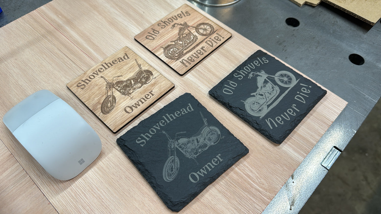 Wij maken onderzetters op maat voor jouw bedrijf, club, of gewoon met een leuke tekst en/of afbeelding. Dit kan op Hout, Leisteen en RVS.