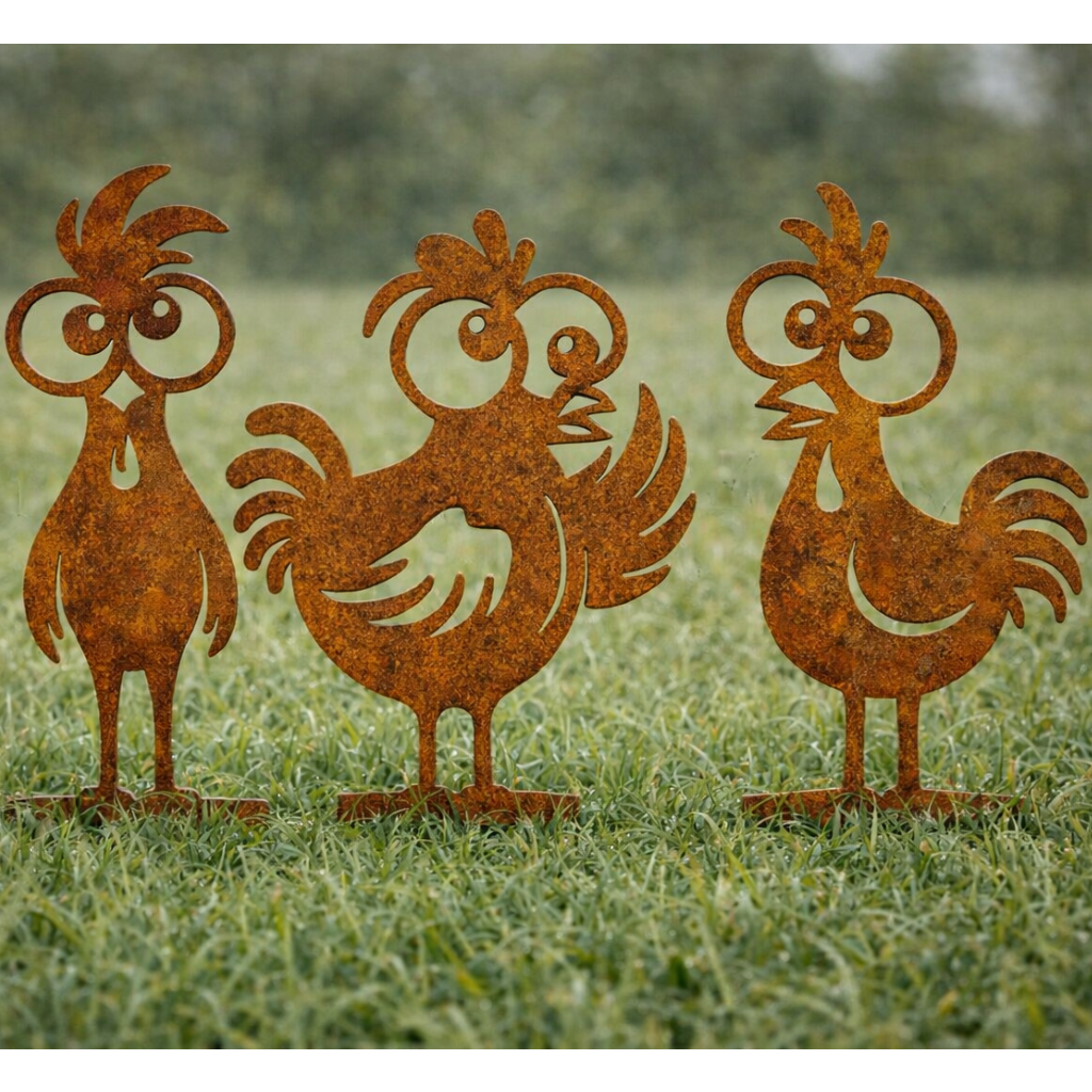 Kippen Set - Corrie, Piet & Henk | Tuinsteker Cortenstaal