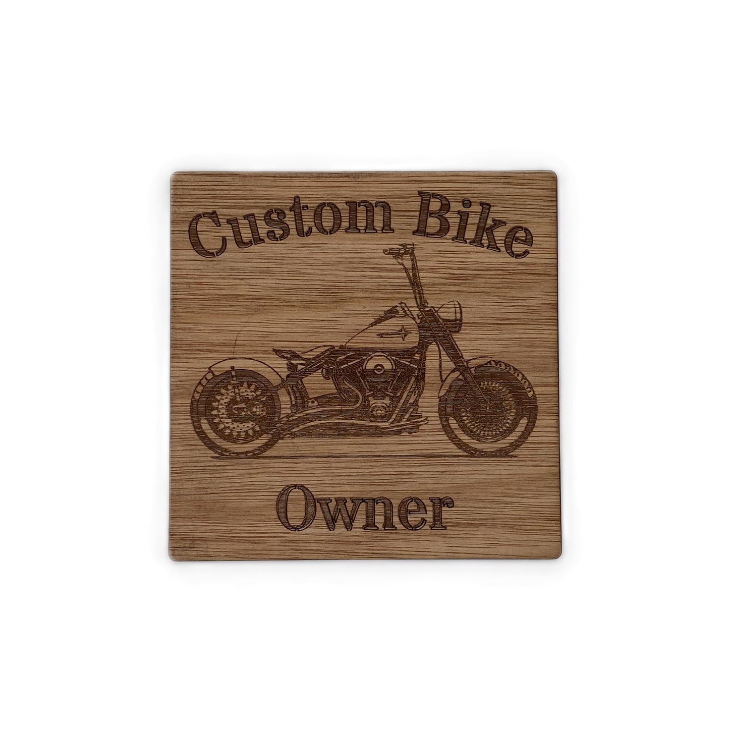 Mooie hardhouten onderzetters van 9x9cm, met afbeelding van diverse typen motorfietsen.